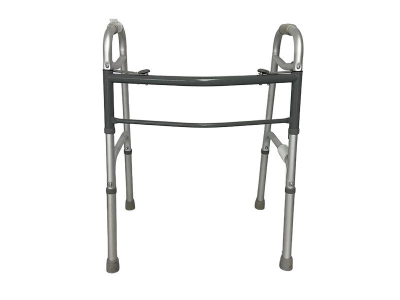 3.助行器折叠:按下左右按键,手握扶手管向内收拢,即可折叠。